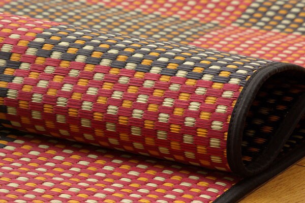 ■デザイン、品質等を評価される福岡県の2007年品評会で優秀賞を受賞した花ござカーペットです。袋織りよりもさら に鮮明に色柄を出した三重織りで仕上げました。