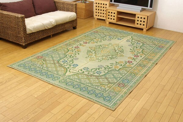 純国産 い草花ござカーペット 『アシック』 グリーン 江戸間3畳(約174×261cm)【送料無料】【代引き不可】