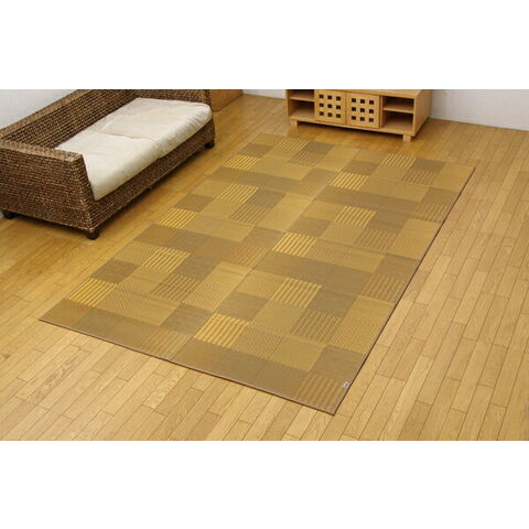 いろいろな織りを組み合わせたパッチワーク風のい草カーペットです。織り方によって違う複数の肌感触をお楽しみ頂けます。落ち着いた色目でモダンな雰囲気に仕上げました。国産(九州産)のい草を使用しています。一本一本が太く、表皮が厚く繊維がキメ細かいので弾力性があり、耐久性に優れています。い草には空気の自然浄化作用、湿度の調節作用などがあります。また汚れにくく、使用するうちに黄金色に変化し味が出ます。い草に青森ヒバ加工を施しています。(抗菌、防臭効果)裏にはフローリングを傷つけにくいよう不織布を貼っています。