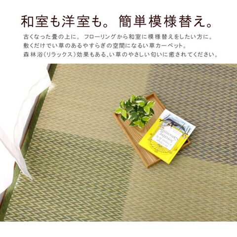 花ござを敷くだけで畳のお部屋をリフレッシュ出来ます。日焼けしてしまった畳のリフレッシュに、新品の畳を汚さない為のカバーにご使用下さい。い草には空気の自然浄化作用、湿度の調節作用などがあり、汚れにくいという特長があります。い草に青森ヒバ加工を施しています(抗菌・防臭効果)。青森県のヒバの木から抽出した「ヒバ油」をメーカー独自の技術で材料や商品に加工しました。「ヒバ油」には、ヒノキチオールという天然物質としては極めて抗菌性の高い成分が含まれ、医療や食品など多分野で利用研究が進められています。