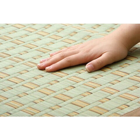 い草敷物の中でも高級品とされる「掛川織り」のカーペットです。掛川織は九州筑後地方の伝統的な織り方です。大きな目と小さな目に交互に織り込んだ美しく洗練されたモダンなデザインが人気です。また、厳選された良質の太く長いイ草を高密度に織り込んでいますので丈夫で耐久性があり、しかも素足に心地よいクッション性とボリューム感があります。。い草に青森ヒバ加工を施しています。(抗菌、防臭効果)