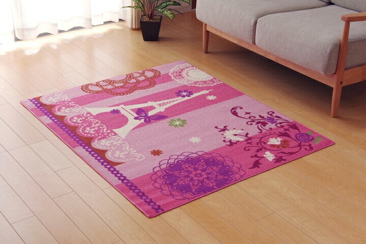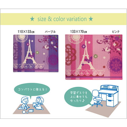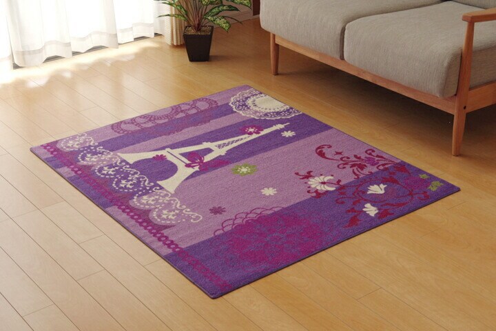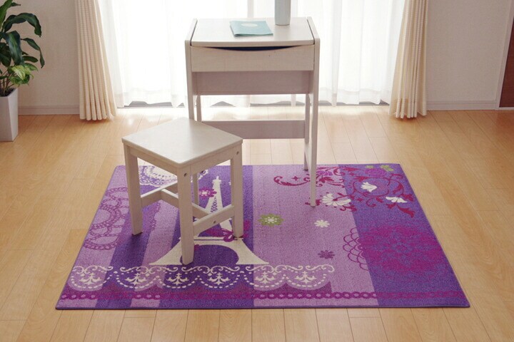 デスクカーペット 女の子 エッフェル柄 『ジェンヌ ツー』 パープル 約133×170cm 子供 デスクカーペット ルームマット【送料無料】