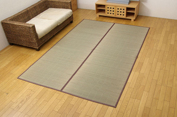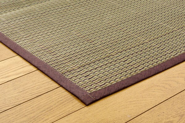 お部屋に敷きやすいベーシックなデザインの裏貼りい草カーペットです。。い草に青森ヒバ加工を施しています。(抗菌、防臭効果)フローリングを傷つけにくいよう裏には不織布を貼っています。