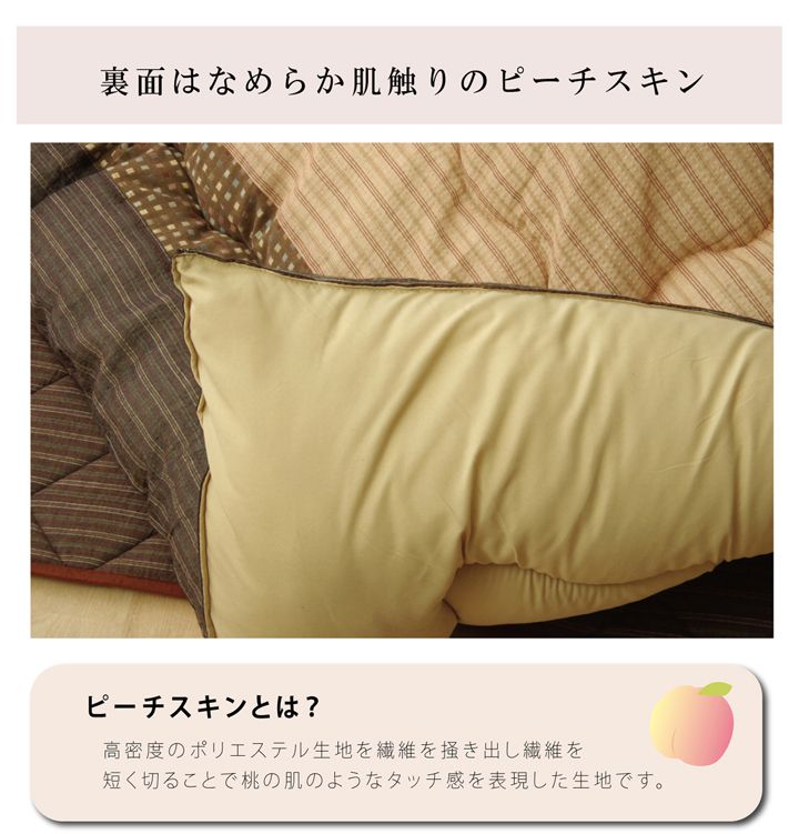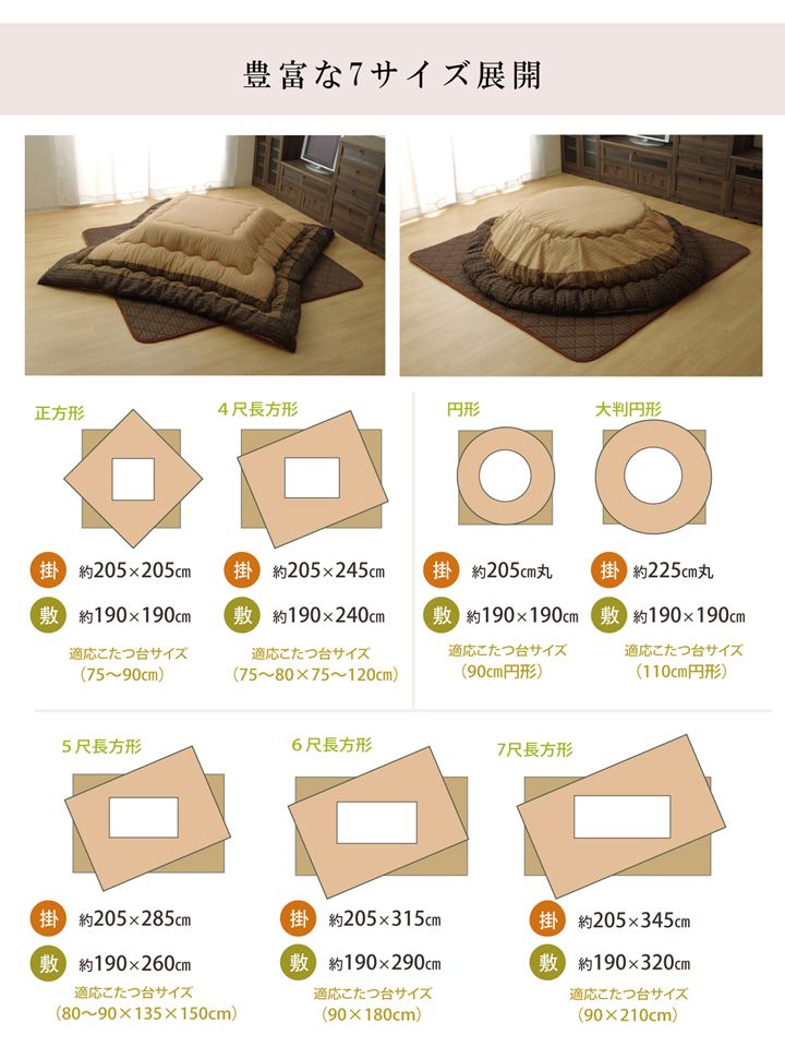 | ■ロングセラーのしじら織のこたつ布団です。べとつかず肌触りの良いしじら織で和室にも洋室にも合うデザインに仕上げました。 ■部分暖房のこたつは電気代もお得です。 | |
