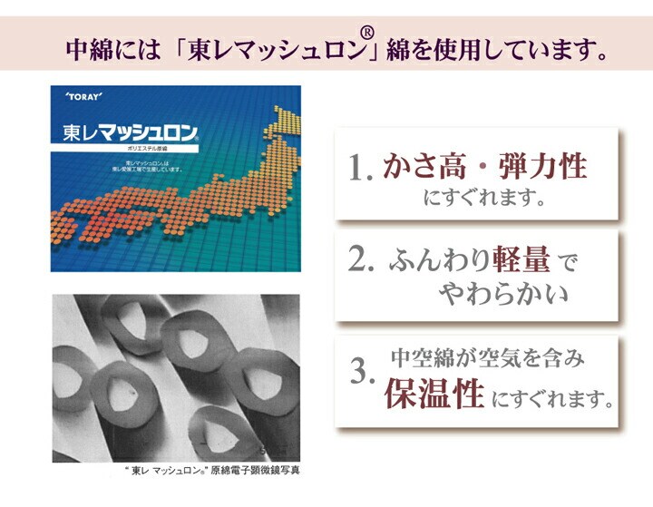 素材:表地=ポリエステル100%【スェード】 裏地=ポリエステル100%【フランネル】 中綿=ポリエステル100% 3.0kg
