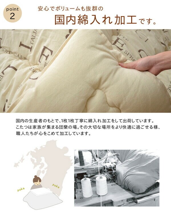 また、綿素材はポリエステル素材に比べ、冬場気になる静電気も起こりにくくなっています。部分暖房のコタツは電気代もおトクです。