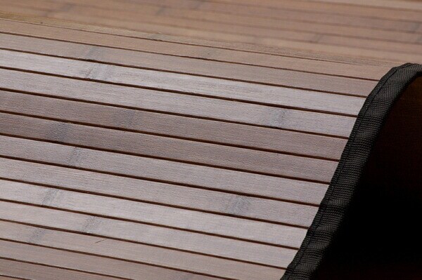 竹は耐久性に優れ、熱伝導率が高いため自然のひんやり感があります。表面の肌触りを滑らかにするため、また竹の色を揃えるためにUV塗装を施しています。シンプルな糸無しの張り付けタイプです。また無垢材を使用し、あたたかみのある質感に仕上げました。素材は17mm幅の竹ヒゴを使用しています。17mm幅の竹ヒゴは大きく育った竹からしか取れない素材です。竹は他の木材と比べると格段に成長が早く(3~5年で成竹)、持続的生産が可能な環境に優しいサスティナブルな素材です。