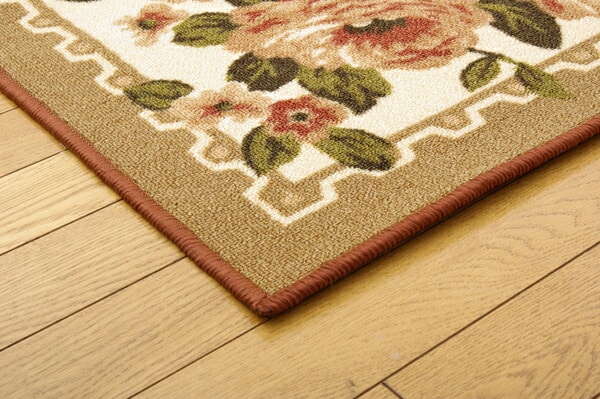 ナイロン 花柄 簡易カーペット 撥水キャンベル ベージュ 江戸間4.5畳(約261×261cm)【送料無料】