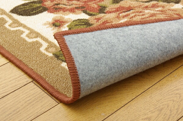 絵羽柄のカーペットです。表地には撥水加工を施しておりますので、汚れにくくお手入れも簡単です。表地のパイル部分にはナイロンを使用しています。ナイロンは強度や摩耗に強く、速乾性があり、また遊び毛も出にくいなどの特徴があります。ダイニングカーペットや敷き詰めカーペットとしてのご使用にも適しています。季節を選ばず、オールシーズンご使用頂けます。同柄のキッチンマットも取扱いがありますので、トータルでのコーディネートもお勧めです。