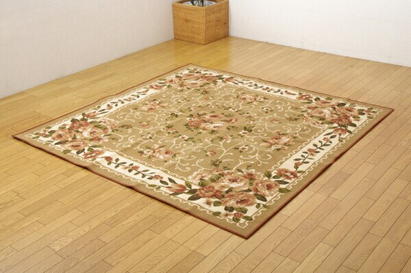 ナイロン 花柄 簡易カーペット 撥水キャンベル ベージュ 約200×300cm【送料無料】