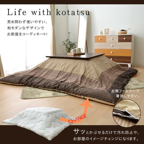 こたつ布団カバー 正方形 洗える 和柄 ゆかり ベージュ 約215×215cm ファスナータイプ【送料無料】