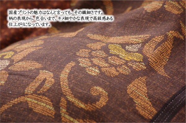 和モダン柄のこたつ布団です。熱が逃げにくいフィットキルト加工を施しています。生地に撥水加工を施しています。生地には肉厚で張りと光沢のある綿素材を使用しています。こちらの商品は国内でプリント、綿入れしています。日本製のプリントらしい上質な質感と繊細な文様をお楽しみ下さい。部分暖房のこたつは電気代もおトクです。