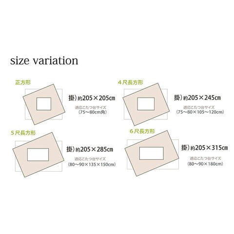 約205×245cm(75~90×105~120cm幅のこたつ台に適応)