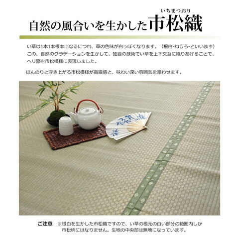 | 組成 | い草(熊本県八代産) ※市松織 ヘリ=ポリプロピレン、ポリエチレン 裏地=ウレタンフォーム3mm |