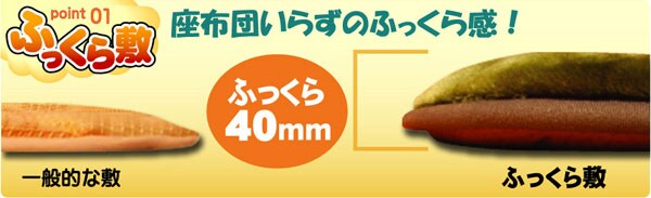 | ■表地には肌触りが良く、耐久性に優れたマイクロファイバーを使用しています。 ■中材にはクッション性にこだわった国産の固綿40mmを使用しています。十分な弾力性があるのでフローリングでのご使用にも最適です。遮音特級LL-30を取得しています。床下への騒音も軽減します。 ■こたつと併用するとこたつの熱を床下へ逃しにくくなるので省エネ効果もあります。 ※写真は表記サイズと異なる場合がございます。 | |