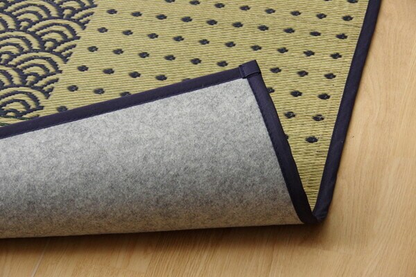 い草には空気の自然浄化作用、湿度の調節作用などがあります。フローリングを傷つけにくいよう、裏には不織布を貼っています。い草に青森ヒバ加工を施しています(抗菌、防臭効果)。青森県のヒバの木から抽出した「ヒバ油」をメーカー独自の技術で商品に加工しました。「ヒバ油」には、ヒノキチオールという天然物質としては極めて抗菌性の高い成分が含まれ、医療や食品など他分野で利用研究が進められています。
