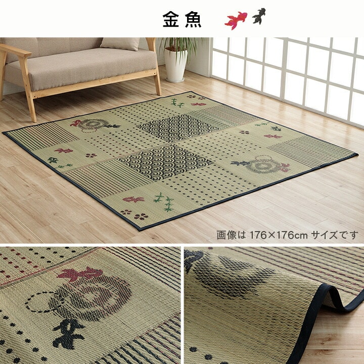 い草ラグ ラグ カーペット 3畳 長方形 かわいい 猫 ねこ ネコ DXクロネコ 約176×230cm 裏:不織布【送料無料】