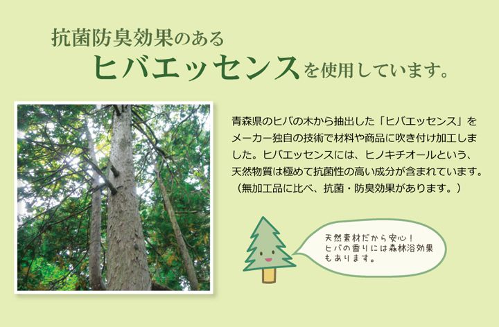 マットレスとして使用できるユニット畳です。布団の下に敷いても使用していただけるように、布団のサイズに合わせました。布団を上げれば、簡易的な和室やお子様が遊べるスペースとしてもご使用いただけます。表地に国産(九州産)のい草を使用しています。一本一本が太く、表皮が厚く繊維がキメ細かいので弾力性があり、耐久性に優れています。い草には空気の自然浄化作用、湿度の調節作用や汚れにくいといった特徴がありますので布団の下の湿度もを調湿してくれます。青森県のヒバの木から抽出した「ヒバエッセンス」をメーカー独自の技術で生地表面に加工しました。ヒバエッセンスにはヒノキチオールという天然物質としては極めて抗菌性の高い成分が含まれています(無加工品に比べ抗菌・防臭効果)。
