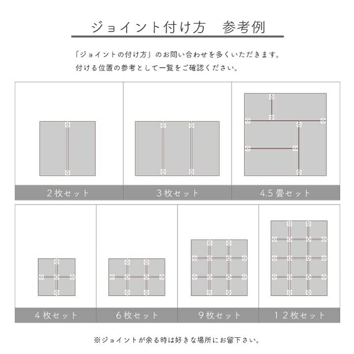 連結用ジョイントを使用すれば、お部屋に合わせて簡単に何枚でもつなげることが出来ます。