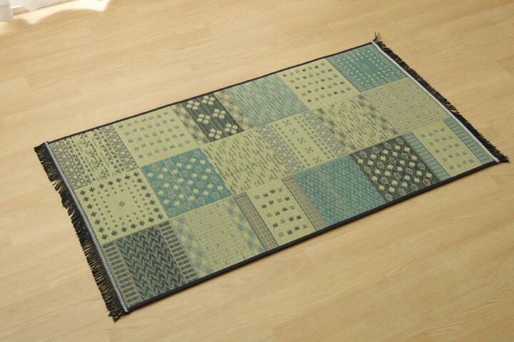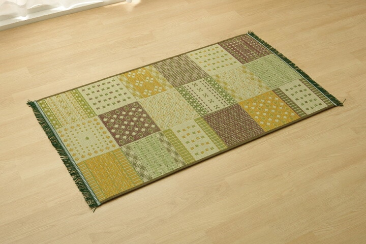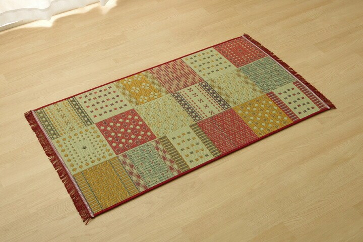 玄関マット 室内 おしゃれ 70×120 国産い草 「Fカラフルブロック」 約70×120cm【送料無料】