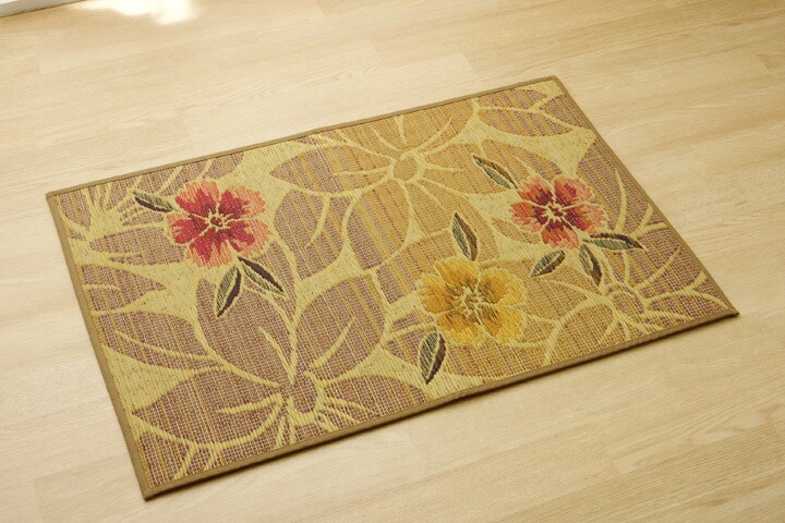 九州産のい草を使用した玄関マットです。一本一本が太く、表皮が厚く繊維がキメ細かいので弾力性があり、耐久性に優れています。また使用していくうちに綺麗な黄金色に変化していきます。い草には空気の清浄化作用、湿度の調節作用があり、汚れにくいといった特徴があります。青森ヒバ加工を施しています。(抗菌、防臭効果)裏には適度なクッション性があり、滑りにくい国産のウレタンを貼っています。