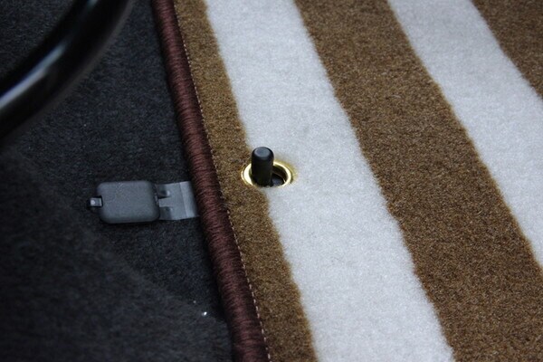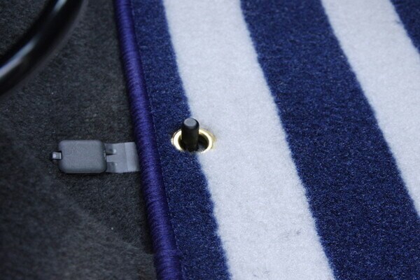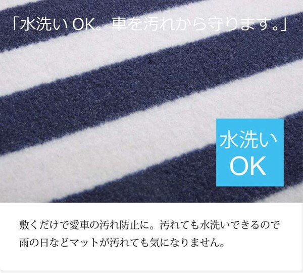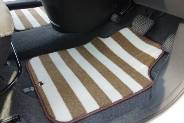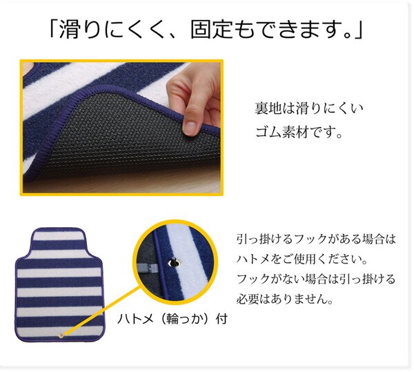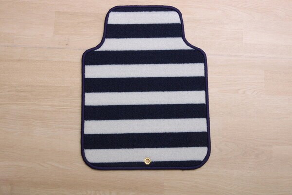 シンプルなボーダー柄をネイビーとベージュのベーシックな色で仕上げたフロント(運転席・助手席用)足元用マットです。
