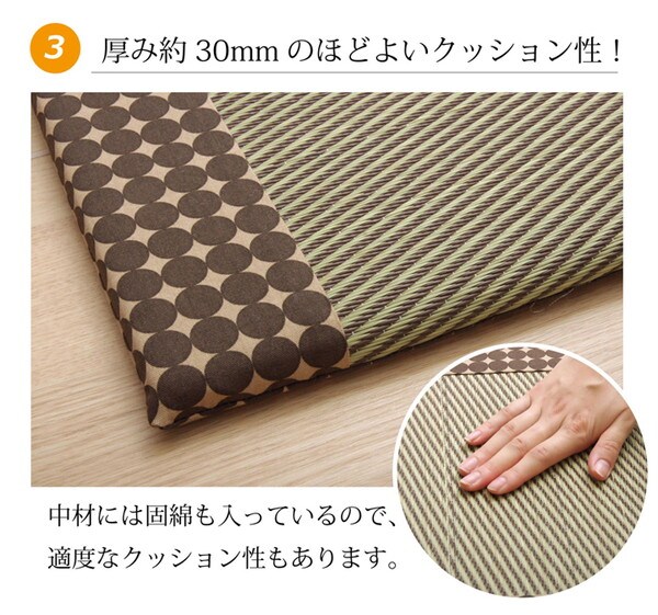 素材:表地=い草(九州産)+ポリプロピレン 布部分=綿100% 中材=アレルプルーフ+ポリエステル100%【固わた】