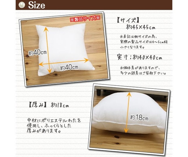 国内綿入れ加工をしているためふっくらとしたほどよいクッション性があります。お好きなカバーをかけてお部屋に合ったクッションにできます。