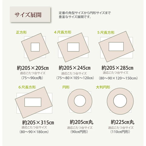 | 75~80×105~120cm幅のこたつ台に適応 | |