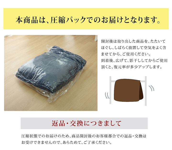 | 組成 | 表地=ポリエステル100%【フランネル】 裏地=ポリエステル100%【フランネル】 中材=ポリステル100%※抗菌防臭加工 2.2kg |