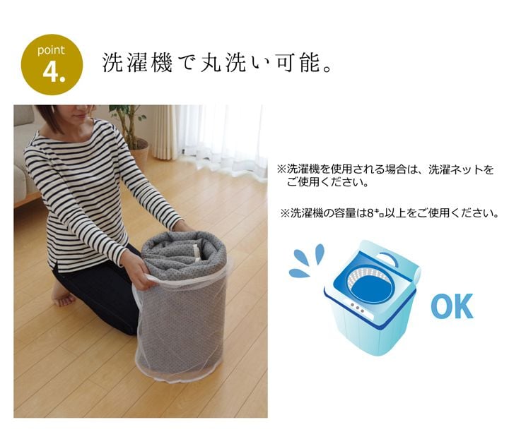 洗濯機で丸洗い可能なウォッシャブルタイプです。