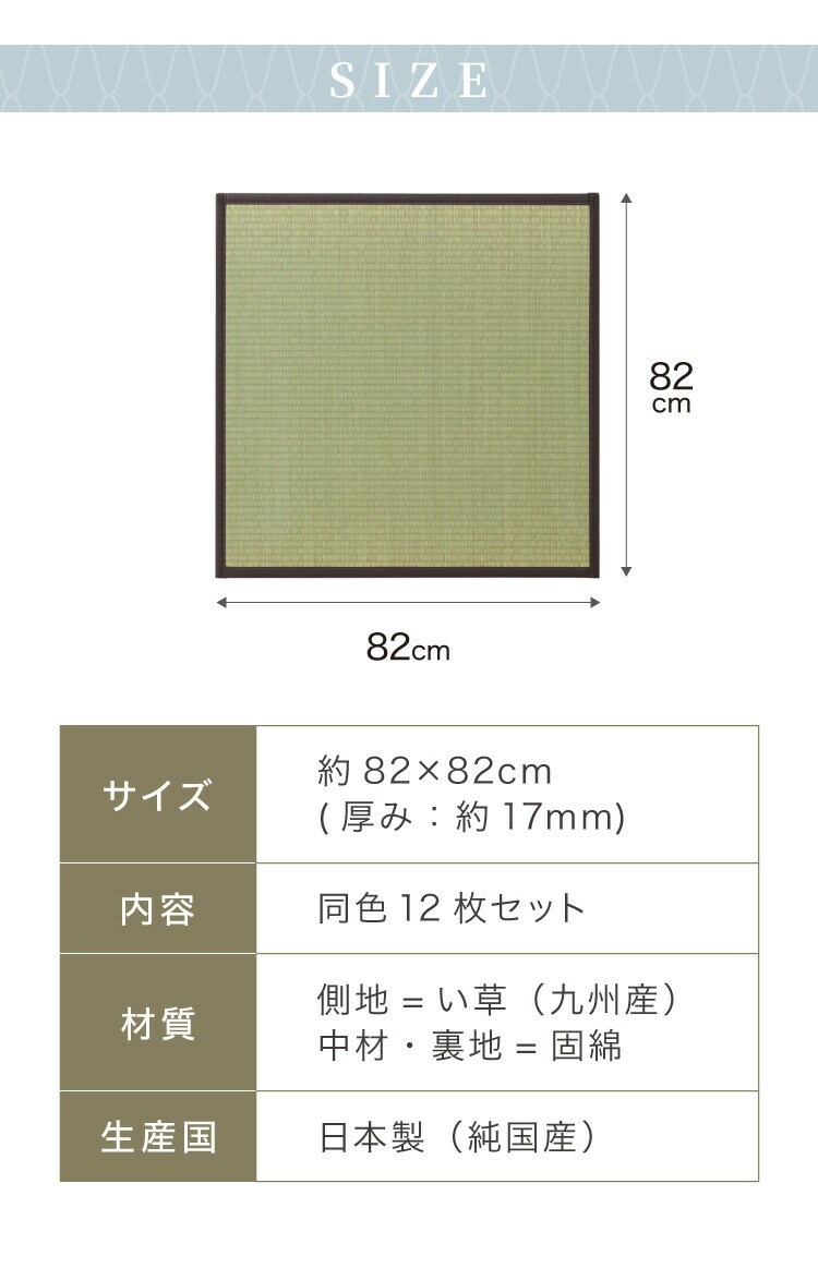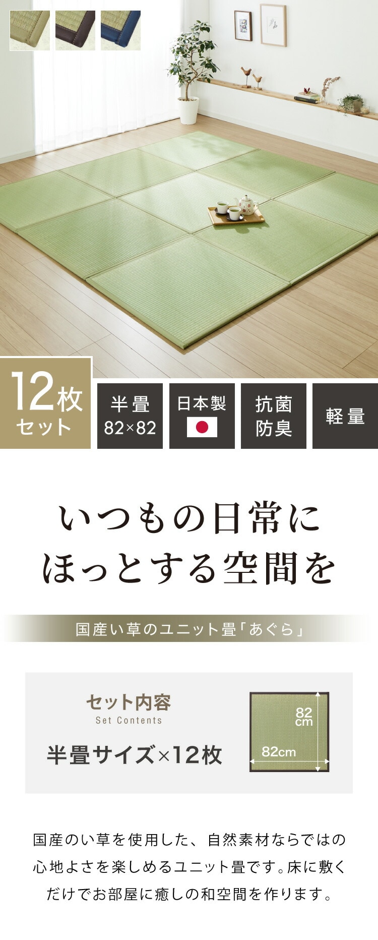 国産 い草 置き畳 ユニット畳 82×82cm 12枚セット 日本製 半畳 畳 ユニット 畳マット藺草 和風 和室 リビング 和家具 簡単 軽量 防音 傷防止 子供部屋 キッズ ふっくら 和モダン【ポイント10倍】 【送料無料】