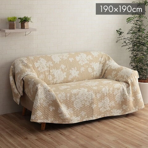 マルチカバー おしゃれ 洗える 正方形 約190×190cm ベージュ 綿 花 水洗いキルト リバーシブル ベッドスプレッド こたつカバー ソファカバー ホットカーペットカバー フローラ【送料無料】