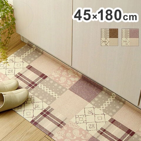 キッチンマット 45×180cm PVC使用 お手入れ簡単 拭ける お掃除ロボ対応 すべりにくい 薄手 耐圧分散 北欧風 カントリー調 インテリア おしゃれ 台所 撥水 滑らない【送料無料】