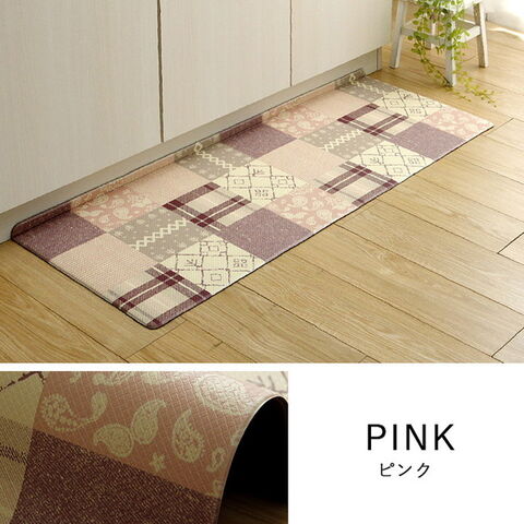 キッチンマット 45×240cm PVC使用 お手入れ簡単 拭ける お掃除ロボ対応 すべりにくい 薄手 耐圧分散 北欧風 カントリー調 インテリア おしゃれ 台所 撥水 滑らない【送料無料】