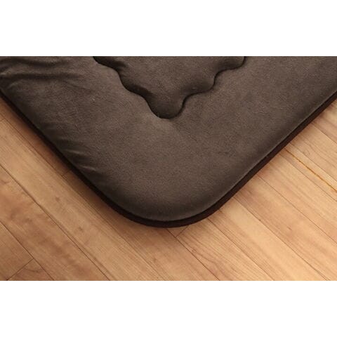 表地には肌触りが良く、耐久性に優れたマイクロファイバーを使用しています。中材にはクッション性にこだわった国産の固綿40mmを使用しています。十分な弾力性があるのでフローリングでのご使用にも最適です。遮音特級LL-30を取得しています。床下への騒音も軽減します。また、こたつと併用するとこたつの熱を床下へ逃しにくくなるので省エネ効果もあります。
