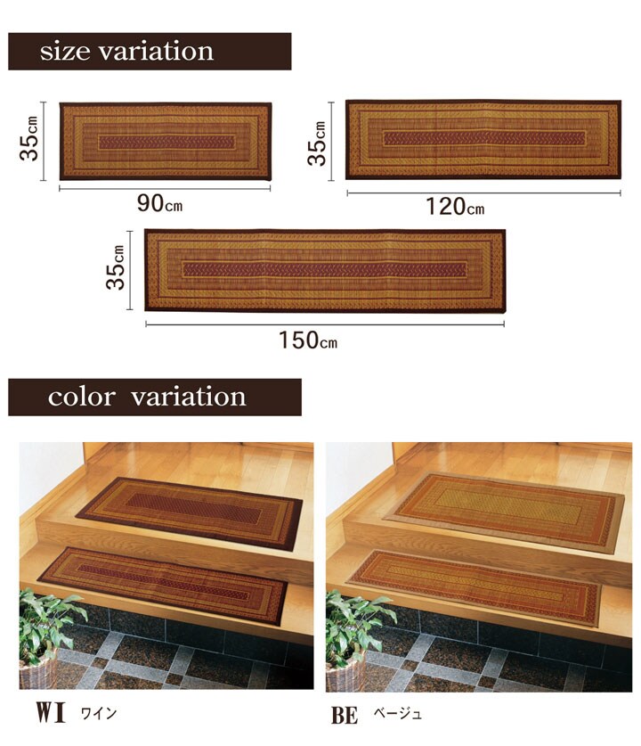 純国産 い草玄関マット Fランクス 上がり框 約35×90cm 裏地ウレタン ラグマット ベージュ ワイン 和風【送料無料】