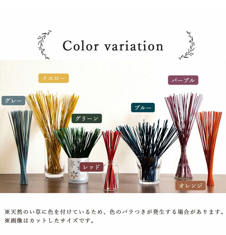 ・い草スティックは、染色しておりますので触ると色が付着します。手に付いた場合は、石けんでよく洗ってください。