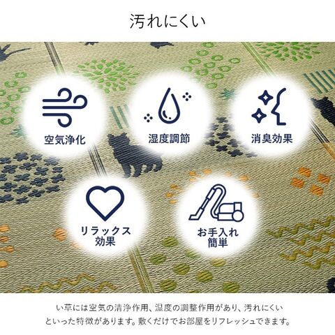 い草には空気の清浄作用、湿度の調整作用があり、汚れにくいといった特徴があります。敷くだけでお部屋をリフレッシュできます。