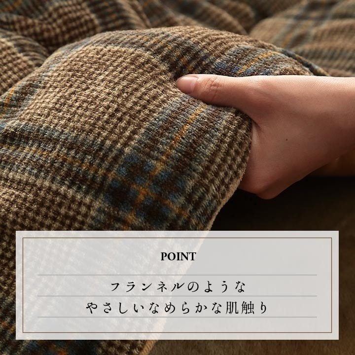 チェック柄のカジュアルなデザインが特徴的なカリスシリーズの洗えるこたつ布団。