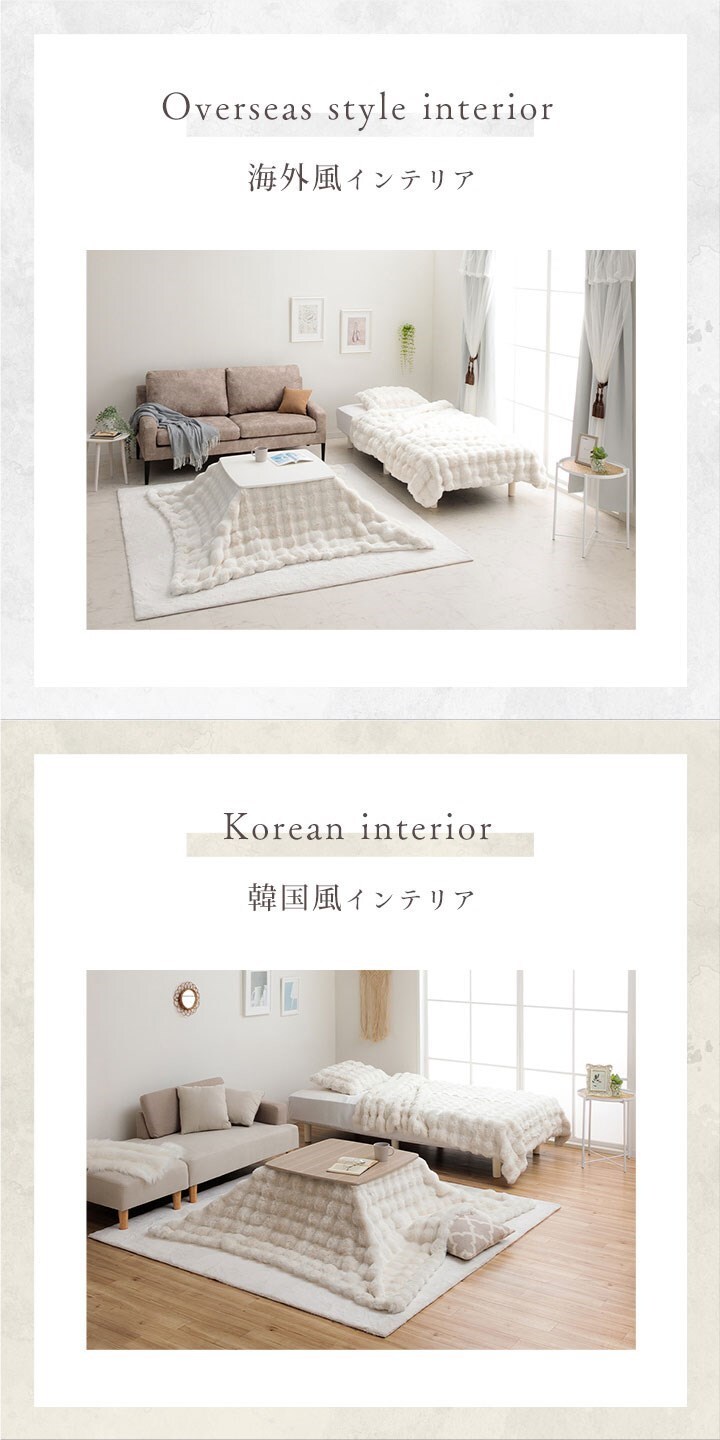 もこもことしたシルエットが可愛い、ラビットファー調のこたつ掛け毛布です。