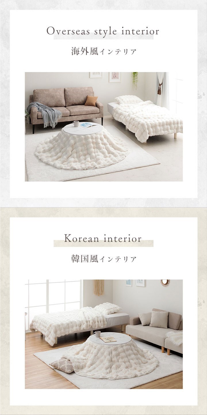 もこもことしたシルエットが可愛い、ラビットファー調のこたつ掛け毛布です。