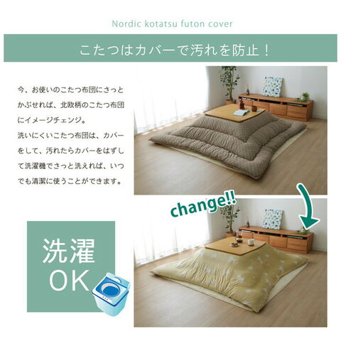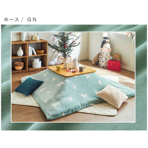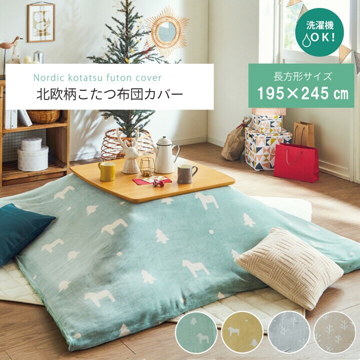 こたつ布団 カバー 洗える 長方形 ファスナータイプ 北欧調 グリーン 約195×245cm ホース【送料無料】