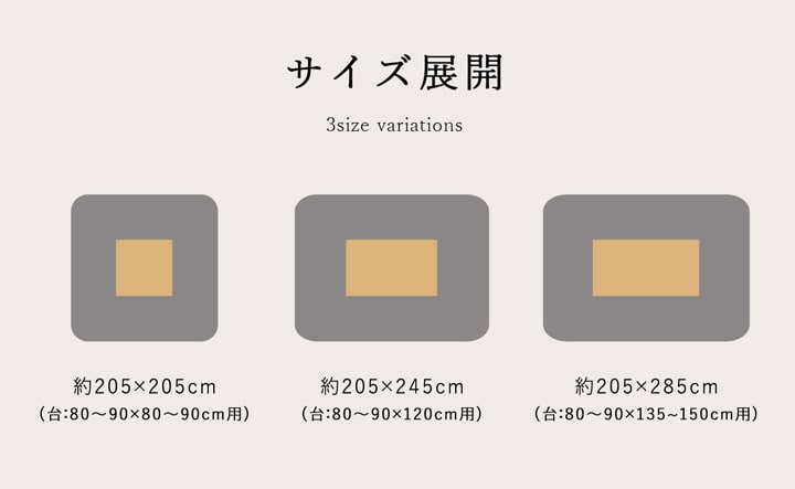 80~90×135~150cm幅のこたつ台に適応
