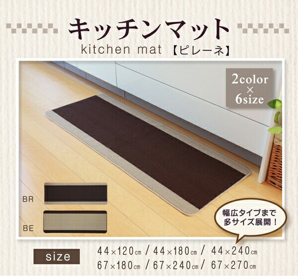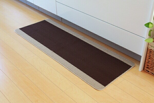 キッチンマット 洗える 無地 ピレーネ ブラウン 約44×240cm (厚み約7mm)滑りにくい加工 マット 44×240cm モダン【送料無料】