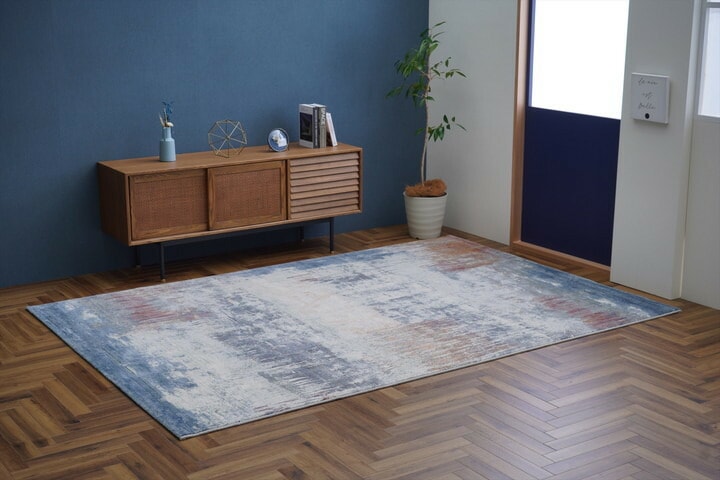 斬新なデザインが特徴的で様々なお部屋にも合わせやすいアブストラクト柄のウィルトンラグ。