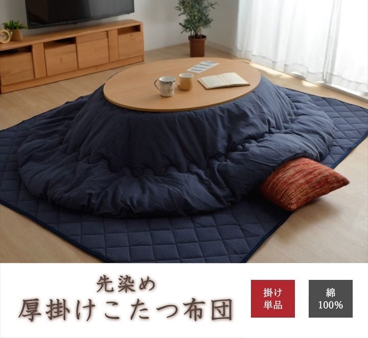 こたつ布団 だ円 楕円 掛け単品 刺し子調 『先染め刺子IT』 ネイビー 約185×225cm楕円(厚掛けタイプ) 刺し子【送料無料】