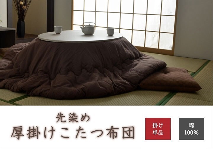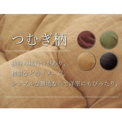 綿を使用したこたつ布団です。織りで素材感を表現することにより,柔らかな味のある雰囲気に仕上げました。綿はポリエステルに比べ,冬場に気になる静電気がおきにくく,繊維の中でも特に肌触りが良いのが特長です。多色多サイズ展開ですのでお部屋にぴったりの色・サイズをお選び頂けます。こたつの特長として1.省エネルギー,こたつは必要なところだけを暖める省エネルギー暖房器具です。2.クリーン,こたつは二酸化炭素など有害物質を出さないのでクリーンです。3.団らんの場,家族や友達が一緒にくつろげる空間,心も体もポッカポカになります。※本商品は圧縮梱包でのお届けとなります。商品が届きましたらお早めに開梱して頂き,2~3時間日陰干しをして頂くと復元が早まります。