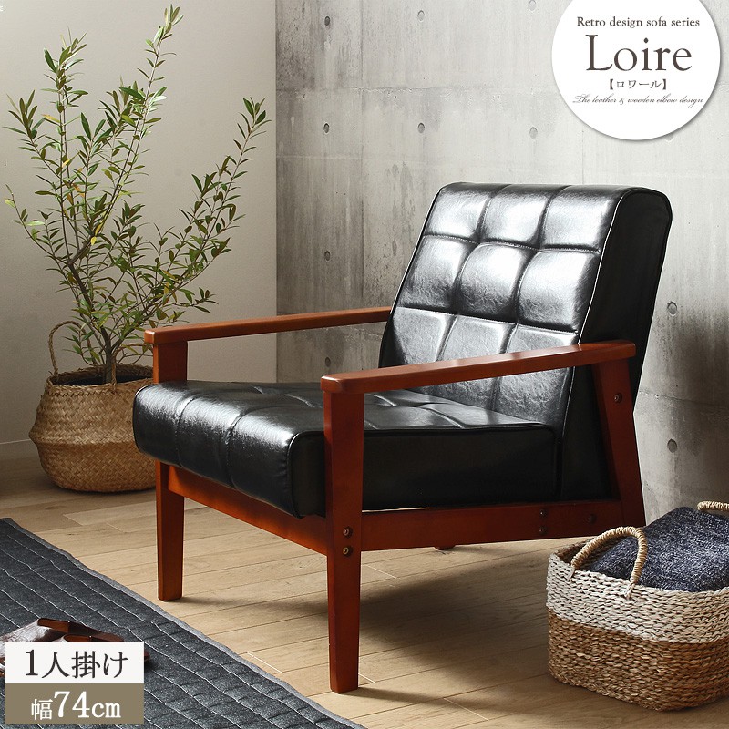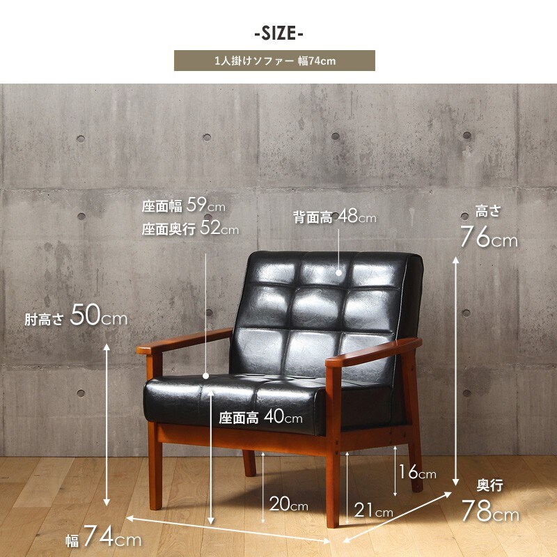 レザー調 肘掛け付きソファ 一人掛け 1人掛け レトロモダンソファIW-72-1P【送料無料】