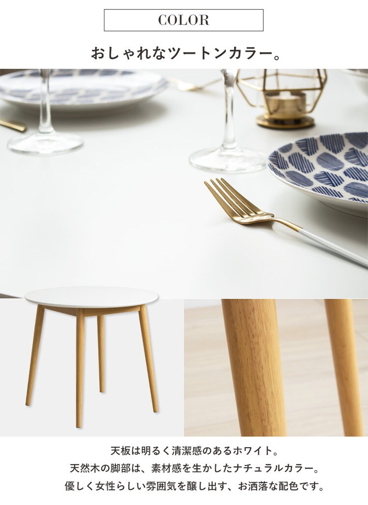 ダイニングテーブル 円形 80cm 白 カフェテーブル おしゃれ 円卓 2人用 2人掛け 北欧 木製 一人暮らし ダイニング 丸テーブル ラウンドテーブル 高さ70cm 省スペース 丸型 丸形 食卓 天然木【送料無料】